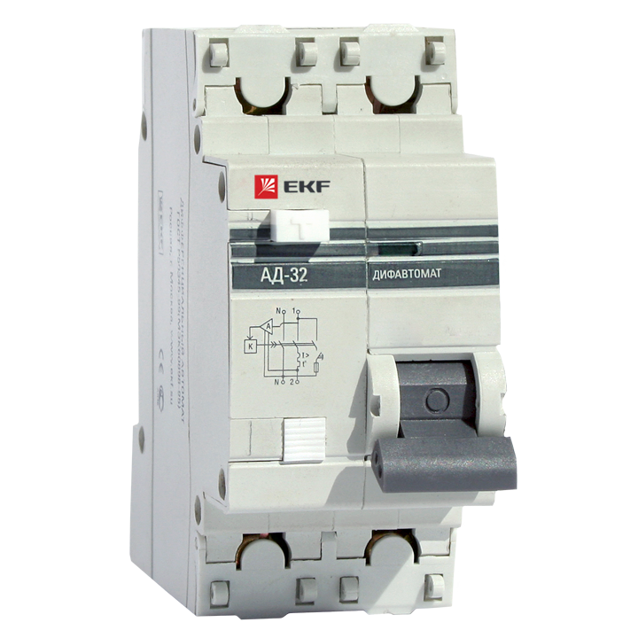 Диф.автомат АД-32 1P+N 10A/30мА EKF PROxima предназначен для комплексной защиты от перегрузок, коротких замыканий и токов утечки.