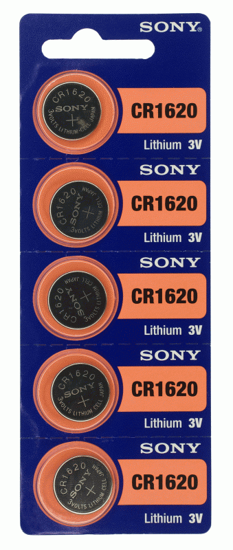 Батарейка литиевая SONY CR1620 3В, блистер 5 шт. Типоразмер CR1620 для пультов, брелоков, часов и электронных приборов. Низкий саморазряд, срок хранения до 10 лет.
