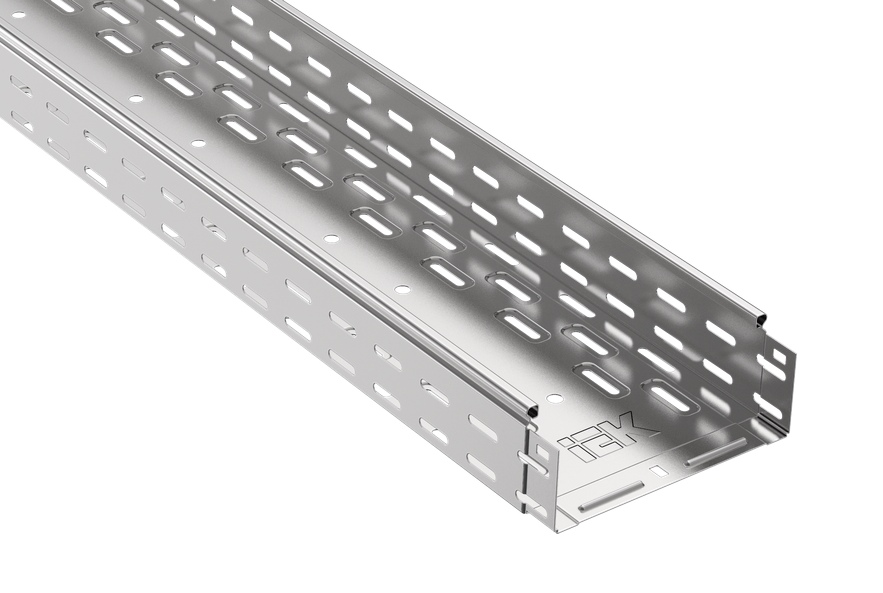 Лоток кабельный перфорированный IEK высота борта 80 мм, ширина 300 мм, длина 3000 мм. Сталь с цинковым покрытием, перфорация обеспечивает вентиляцию и крепление стяжек.