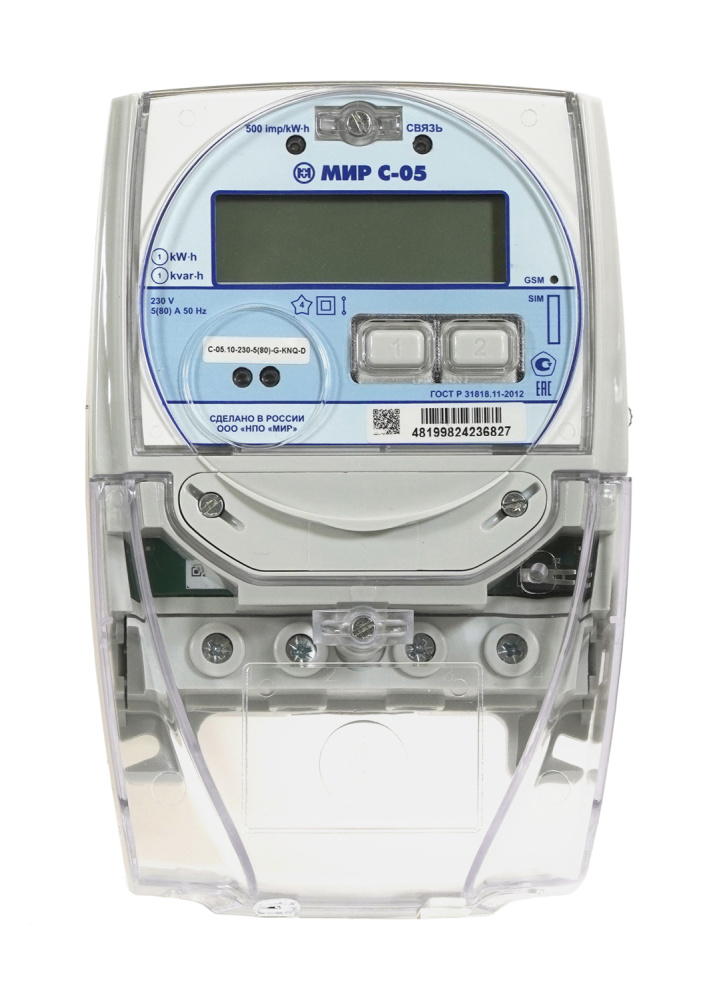 МИР С-07.05S-230-5(10)-R-S2T2LQ-D обеспечивает учёт активной электроэнергии в трёхфазных сетях 3×230/400В при трансформаторном включении. Ток 5(10)А, класс точности 0,5S.